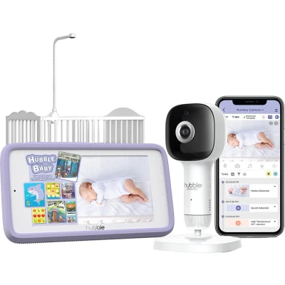 Make sure your little one always sleeps soundly with this Hubble baby monitor. The motion sensors are so savvy they can even give you roll over alerts. That way, you know if your baby is sleeping on their back, whether their face is covered and more. Plus, the Nursery Pal can tell you how well they've slept and how many visits their childminder paid them with enhanced sleep analytics. And what if your baby does something extra cute while you're asleep? AI spots cute expressions or funny faces and makes you a video timeline for easy viewing or sharing. Good to know - The camera's Full HD resolution captures precious moments with crisp and clear image quality- Hubble can even track temperature fluctuations to give you a heads up if the room's getting chilly- You can watch the live feed on the spacious 5" colour display - The parental unit has a rechargeable battery, so you can take it from room to room without missing a second - It comes with a crib mount to get you rolling right away, and a camera stand for when they're a bit older- You can control settings, zoom, pan and tilt, and get notifications right on your phone with the HubbleClub app- The cameras work over 2.4 GHz wireless and WiFi for easy pairing to your phone and the parent unit- 2-way audio lets you hear and talk to your baby from any room in your home- You can play lullabies, nature sounds and audiobooks to help soothe your little one to sleep
