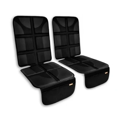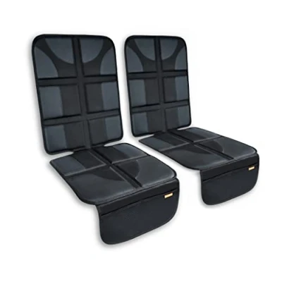 [Protects Your Car Seat Upholstery] - Fully padded, high quality luxury car seat protectors (2 Pack). Prevent dents or damage to your car seat upholstery from heavy child seats. [Premium Quality Padding and Fabric] - 600D Oxford fabric, ultra thick padding and hard-wearing PU leather protective pads. Water-resistant and easy to wipe clean - protect your rear car seats from crumbs and spillages. [Easy to Fit and Non Slip] - Easy to install protectors with a non-slip backing to keep everything safely in place. The car seat protectors feature adjustable headrest straps and padded rear anchor add extra support for secure placement. [Universal Size] - Fully compatible with ISOFIX child seats and full access to seat belt buckles. Huckaboo Car Seat Protectors can be used with all child car seats, Groups 0-3, front or rear facing. [Extra Storage] - Each Car Sear Protector in this 2 pack contains two handy lower pockets for extra storage, ideal for keeping back seats tidy to store kids toys, sweets, books and more.