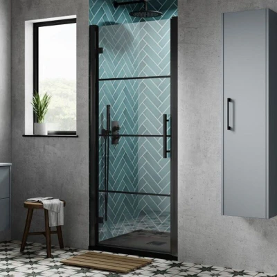 Hudson Reed Apex Grid Hinged Shower Door 800mm 8mm Black