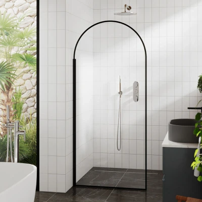 Hudson Reed Arched Wet Room Shower Screen 900mm 8mm Black