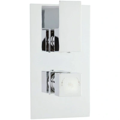 Features and Benefits: Shower valve supplies water to 2 outlets Minimalist sleek design Manufactured from high quality brass & ABS Can be fitted vertically or horizontally Accurate flow control Thermostatic control to +/- 2 degrees even if the water pressure fluctuates Full thermal protection to prevent scalding in the event of hot or cold water shut off In the event of hot or cold water failure the valve will shut down as per the relevant standard The unique cartridge is highly resistant to calcium build up - even in hard water areas Our valves are suitable for use with all systems: gravity fed pumped unvented high pressure or fully modulated combi-boilers Excellent flow rates - even at low pressure Twin handle valve with diverter The cartridge is fully reversible meaning if hot and cold supplies are the wrong way round it doesn't need re-plumbing Simply remove the cartridge turn 180 degree and replace Guarantee: 20 years against faulty workmanship or materials (1 year on serviceable
