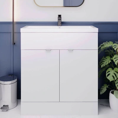 Hudson Reed CBI128A Fusion Modern Bathroom 2 Door Floor Standing Vanity Unit and Full Depth Ceramic Basin, 800mm, Gloss White