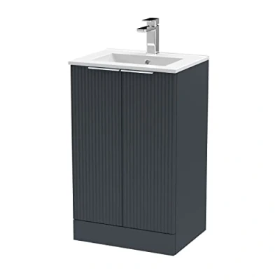Tactile and striking, the Fluted collection is inspired by retro design, but with a modern twist. Combining high quality manufacturing and materials, the eye-catching Fluted range of bathroom furniture from Hudson Reed will become the focal point of a much loved bathroom for years. The floor standing vanity unit has 2 soft close doors to prevent slamming and ensuring a longer unit life. The cupboard has ample storage for bathroom essentials, and keeps your bathroom clutter free. Manufactured from high quality materials, in a range of contemporary colours to fit with both modern bathrooms, or for a retro inspired design with the full fluted front. Choose from a crisp White, a cool Grey, a deep Black, a bright Blue and a calming Green - all in a satin finish. With a ceramic Minimalist basin. Matching furniture available for a matching bathroom. DIMENSIONS - H: 810mm, W: 500mm, D: 383mm 5 year manufacturer's guarantee, Weight: 58.42249943 Pounds, Manufacturer: Hudson Reed