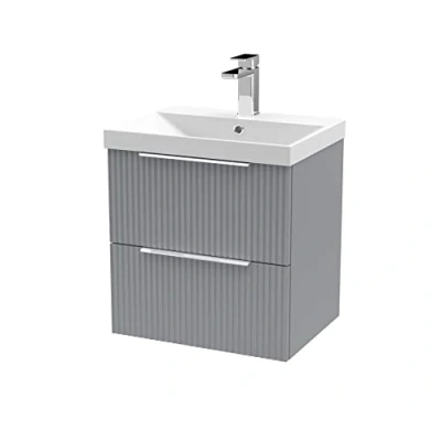 Hudson Reed DFF292D Fluted Modern Bathroom Wall Hung 2 Drawer Vanity Basin Unit with Thin Edge Ceramic Basin, 500mm, Satin Grey