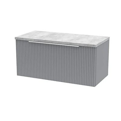 Hudson Reed DFF296LBG Fluted Modern Bathroom Wall Hung 1 Drawer Vanity Unit with Bellato Grey Laminate Worktop, 800mm, Satin