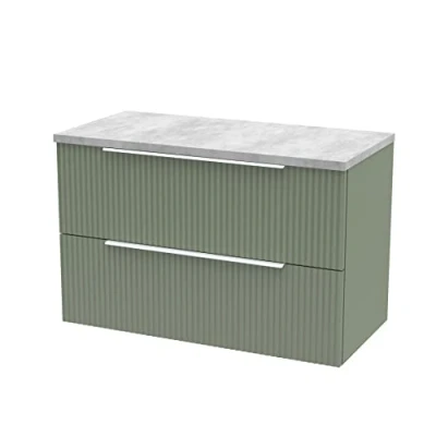 Hudson Reed DFF895LBG Fluted Modern Bathroom Wall Hung 2 Drawer Vanity Unit with Bellato Grey Laminate Worktop, 800mm, Satin Green
