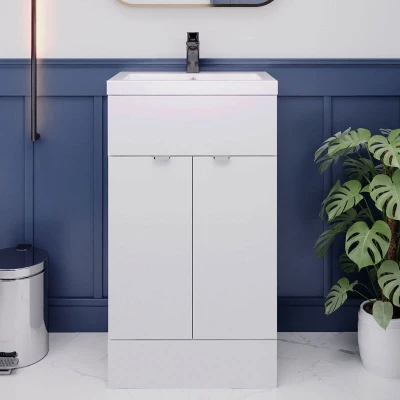 Hudson Reed Fusion Floor Standing Vanity Unit with Ceramic Basin 500mm Wide Gloss White