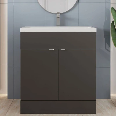 Hudson Reed Fusion Floor Standing Vanity Unit with Ceramic Basin 800mm Wide Gloss Grey