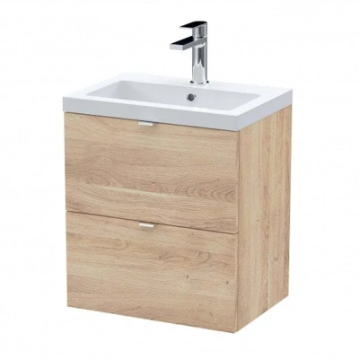 Hudson Reed Fusion Wall Hung 2 Drawer Vanity Unit with Ceramic Basin 500mm Wide Bleached Oak