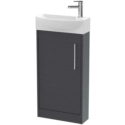 Hudson Reed JNU2221L Juno Compact Modern Cloakroom Floor Standing 1 Door Unit with Tap Hole Left Hand Basin, 440mm, Woodgrain Graphite Grey