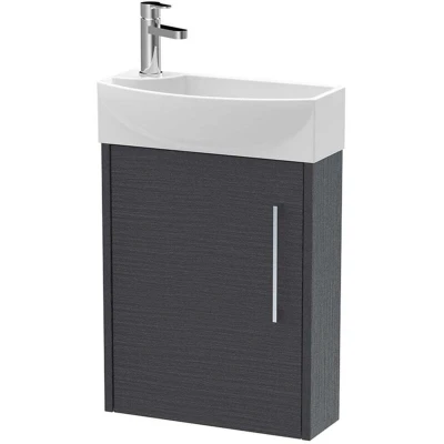 Hudson Reed JNU2261R Juno Compact Modern Cloakroom Wall Hung 1 Door Unit with Tap Hole Right Hand Basin, 440mm, Woodgrain Graphite Grey