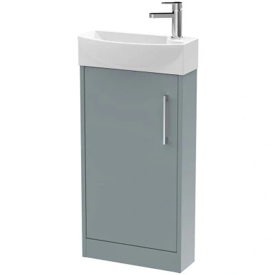 Hudson Reed JNU2321L Juno Compact Modern Cloakroom Floor Standing 1 Door Unit with Tap Hole Left Hand Basin, 440mm, Matt Coastal Grey