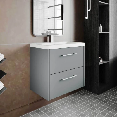 Hudson Reed Juno Matt Coastal Grey 600mm Wall Hung 2 Drawer Vanity Unit and Minimalist Ceramic Basin JNU2324B
