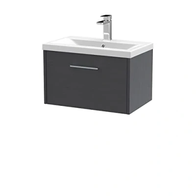 AmazonThe Juno range from Hudson Reed is the epitome of contemporary bathroom furniture. With a crisp outer frame design and tactile finishes, this wall hung vanity unit is an eye-catching focal point for a modern bathroom. Manufactured from high quality materials, with single soft close drawer, ample storage and mid-edge ceramic basin. Supplied rigid for easy installation. The wall hung space saving design is perfect for smaller bathrooms. Available in 5 contemporary and curated colours to truly bring your dream bathroom to life. Choose from a light woodgrain White Ash, a striking woodgrain Graphite Grey, a warm woodgrain Autumn Oak, a calming matt Coastal Grey and an eye-catching matt Electric Blue. DIMENSIONS - H: 359mm, W: 600mm, D: 385mm 5 Years manufacturer's guarantee, Weight: 52.91094288 Pounds, Manufacturer: Hudson Reed