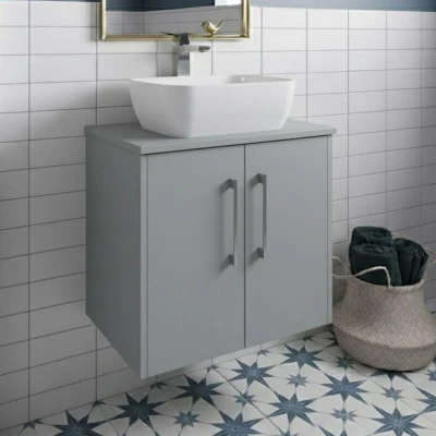 Hudson Reed Juno Wall Hung 2 Door Vanity Unit with Worktop 600mm Wide Coastal Grey