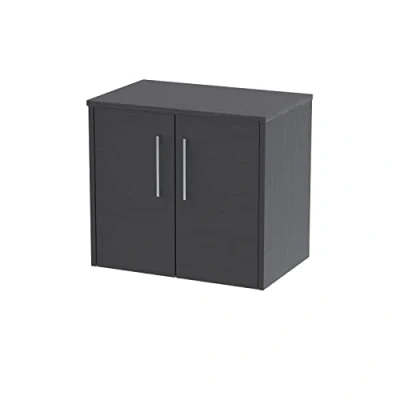 Hudson Reed Juno Wall Hung 2 Door Vanity Unit with Worktop 600mm Wide Graphite Grey