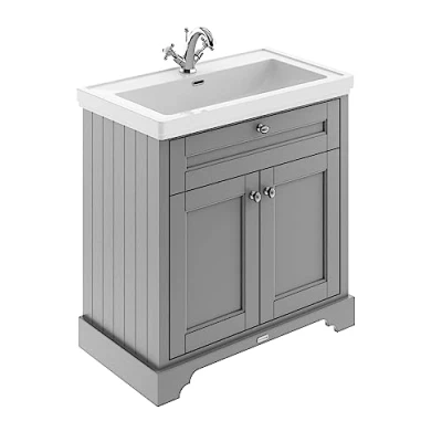 Hudson Reed LOF206 Old London Traditional Bathroom Floor Standing 2 Door Vanity Unit & 1 Tap Hole Fireclay Basin, 800mm, Storm Grey