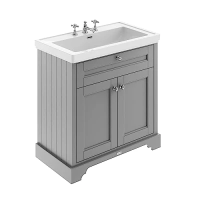 Hudson Reed LOF236 Old London Traditional Bathroom Floor Standing 2 Door Vanity Unit & 3 Tap Hole Fireclay Basin, 800mm, Storm Grey