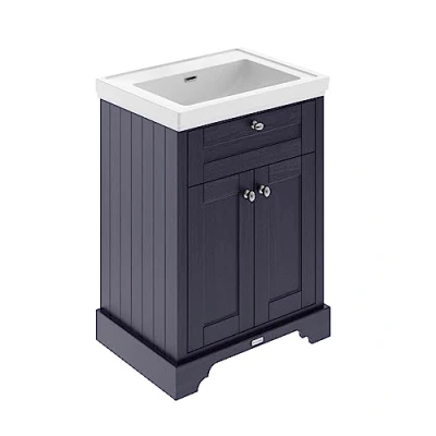 Hudson Reed LOF344 Old London Traditional Bathroom Floor Standing 2 Door Vanity Unit & 0 Tap Hole Fireclay Basin, 600mm, Twilight Blue