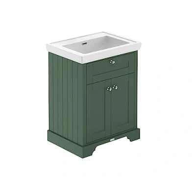 Hudson Reed LOF844 Old London Traditional Bathroom Floor Standing 2 Door Vanity Unit & 0 Tap Hole Fireclay Basin, 600mm, Hunter Green
