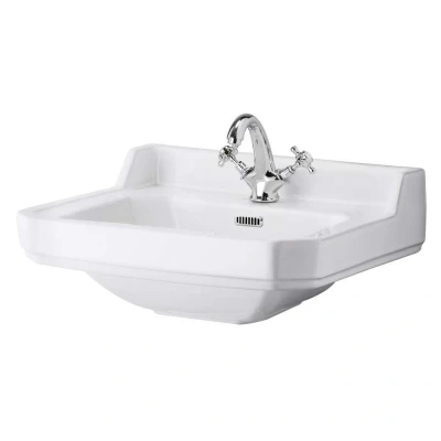 General description The Old London Richmond 500mm Basin is a stunning addition to your bathroom that encapsulates early Edwardian charm. This traditional basin blends functionality with timeless design, making it an ideal choice for homeowners, designers, and contractors looking to elevate their bathroom aesthetics. Crafted from high-quality vitreous china, the Richmond basin offers durability and a glossy finish that enhances its classic appeal. Its soft angular design exudes sophistication while ensuring ease of use, making it a versatile option for various design themes. Technical specifications Model Number: NCS885A Basin Width: 500mm Basin Projection: 350mm Basin Total Height: 223mm Basin Bowl Height: 223mm Basin Bowl Width: 400mm Wall to Waste Outlet: 185mm Wall to Tap Hole: 48mm Outlet Connection Size: 46mm Weight: 12.53 Kg Material: Vitreous China Colour: White Style: Traditional Basin Tap Holes: 1 (Central) Includes Overflow: Yes Installation Installation is straightforward,