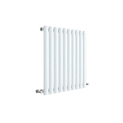 General description One of the most popular radiators on the market today, Hudson Reed's Revive model is defined by stylish oval tubes, offering a subtle step up from a typical panel radiator. The Revive is available in single panel or double panel formats, with a curated set of sizes to suit most applications. Choose from gloss white or anthracite finishes. Technical specifications Radiator Type: Designer Radiator Configuration: Single Design: Oval Tubes - Vertical Height: 600mm Width: 586mm Depth: 55mm Pipe Centres: 586mm + Valves Wall to Front: 94mm Wall to Pipe Centres: 51mm Output (Watts) @ Delta 50: 433 Output (BTU) @ Delta 50: 1477 Orientation: Horizontal Sections: 10 Material: Mild Steel Colour: High Gloss White Weight: 13.1 Kg EAN Barcode: 5056211885092 Manufacturer Part Number: HL338 Installation Wall-mounted radiator - supplied complete with wall brackets and fixings All tappings are 1/2" British Standard Pipe Extra care must be taken during installation to avoid damaging