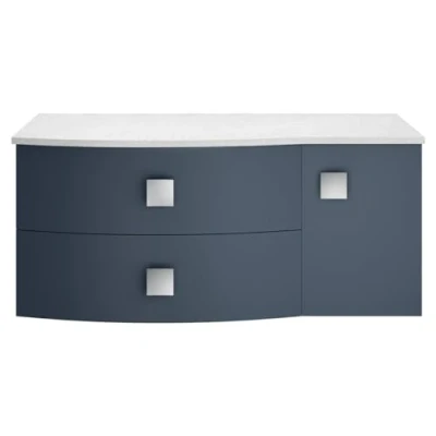 Hudson Reed SAR303L Sarenna Modern Bathroom Wall Hung 2 Drawer 1 Door Vanity Unit with Marble Worktop, LH, 1000mm, Mineral Blue/White