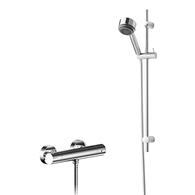 This sleek and modern shower bundle from nuie, brings together high quality pieces manufactured from brass and ABS in a chrome finish, and round designs. The bundle includes a thermostatic bar valve and slide rail kit with multi-function handset, and it saves you money and time, for your brand new shower. The wall hung round bar valve has thermostatic temperature control, and anti scald technology to protect in case of water shut down. The patented Valquest cartridge is made in Great Britain, and can be fitted both horizontally or vertically. The bar valve has a sleek minimalist round design, and a bottom central outlet. With ceramic disc technology, for a smoother operation and longer valve life. The wall mount slide rail kit makes showering accessible with the adjustable height of the round handset. Comes with a 1.5m hose and multi-function handset. DIMENSIONS - BAR VALVE - H: 55mm, W: 275mm, D: 72mm. SLIDE RAIL KIT - H: 705mm, W: 129mm, D: 150mm. 5 year manufacturer's guarantee, Weight: 6.3272669194 Pounds, Manufacturer: Hudson Reed