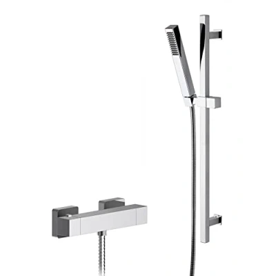 This sleek and modern shower bundle from nuie, brings together high quality pieces manufactured from brass in a chrome finish, and square designs. The bundle includes a thermostatic bar valve and slide rail kit with single function handset, and it saves you money and time, for your brand new shower. The wall hung square bar valve has thermostatic temperature control, and anti scald technology to protect in case of water shut down. The patented Valquest cartridge is made in Great Britain, and can be fitted both horizontally or vertically. The bar valve has a sleek minimalist round design, and a bottom central outlet. With ceramic disc technology, for a smoother operation and longer valve life. The wall mount slide rail kit makes showering accessible with the adjustable height of the square handset. Comes with a 1.5m hose and single function handset. DIMENSIONS - BAR VALVE - H: 55mm, W: 275mm, D: 72mm. SLIDE RAIL KIT - H: 685mm, W: 118mm, D: 74mm 5 year manufacturer's guarantee, Weight: 8.0027801106 Pounds, Manufacturer: Hudson Reed
