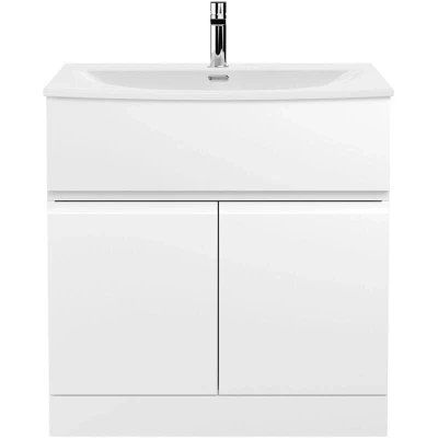Hudson Reed URB105G Urban Modern Bathroom Floor Standing 2 Soft Close Doors and 1 Drawer Vanity Unit with Round Ceramic Basin 30mm Profile, 800mm, Satin White