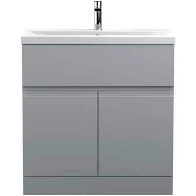 Hudson Reed Urban Floor Standing 2 Door Vanity Unit with Basin 1 Satin Grey 800mm Wide
