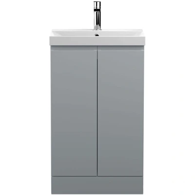 Hudson Reed Urban Floor Standing 2 Door Vanity Unit with Basin 3 Satin Grey 500mm Wide