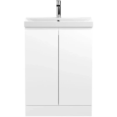 Hudson Reed Urban Floor Standing 2 Door Vanity Unit with Basin 3 Satin White 600mm Wide