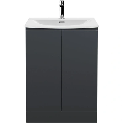 Hudson Reed Urban Floor Standing 2 Door Vanity Unit with Basin 4 600mm Wide Satin Anthracite