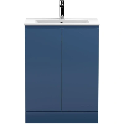 Hudson Reed Urban Floor Standing 2 Door Vanity Unit with Basin Satin Blue 600mm Wide