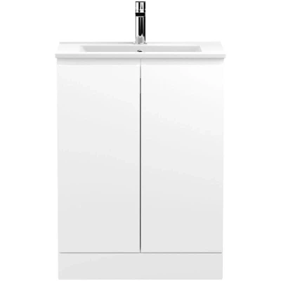 Hudson Reed Urban Floor Standing 2 Door Vanity Unit with Basin Satin White 600mm Wide