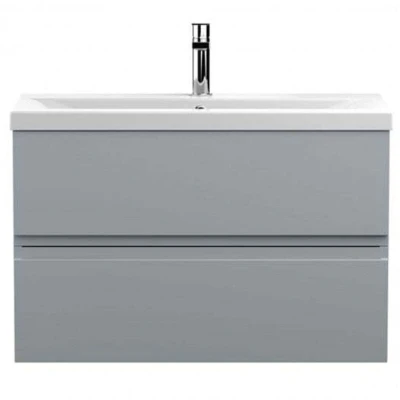 Plumbing SuperstoreThe Hudson Reed Urban range offers a sleek wall-hung vanity unit in sophisticated Satin Grey. It includes a mid-edge rectangular white ceramic basin compatible with any toilet or bathtub design. The ceramic basin features a single tap hole for a mixer tap. This stylish and contemporary unit is a great space-saving solution for en-suites and smaller bathrooms, providing essential storage with two soft-close drawers. Its handleless design blends seamlessly with natural stone effect tiles or neutral colours. The unit is supplied rigid for easy, quick installation and includes fixings. Made from FSC certified materials, it's backed by a 5-year guarantee against faulty workmanship or materials, excluding serviceable parts. Take care during installation to avoid damage. The combination creates a serene home environment that doesn't fade or discolour, ensuring long-lasting appeal.. Hudson Reed Urban 800mm 2-Drawer Wall Hung Satin Grey Vanity Unit & Basin 1 MDF MFC