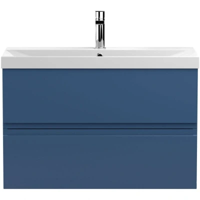 Hudson Reed Urban Wall Hung 2 Drawer Vanity Unit with Basin 3 Satin Blue 800mm Wide