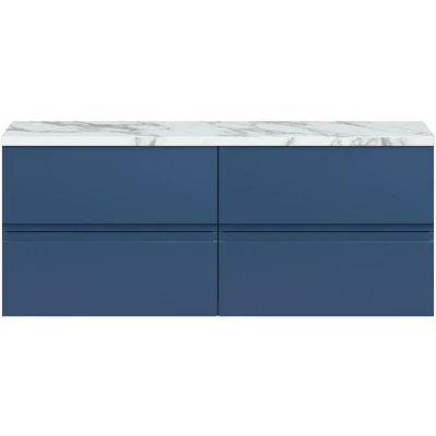 Hudson Reed Urban Wall Hung 4 Drawer Vanity Unit with Carrera Marble Worktop 1200mm Wide Satin Blue