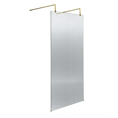 Hudson Reed WRAF19590BB Fluted Modern Bathroom 8mm Toughened Safety Glass Wetroom Screen with 2 Support Arms, 1950mm x 900mm, Brushed Brass