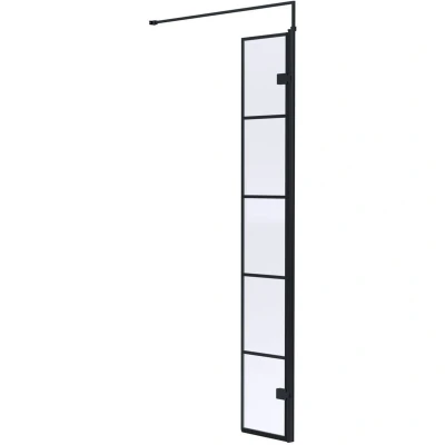 General description There is something extra special about having a wet room in your bathroom, however, installing one isn't quite as easy as you may hope. Designed by Hudson Reed, this framed wet room return panel is not only stylish but also incredibly functional. It boasts a black grid pattern with a stunning matt black frame, adding elegance and modern flair to your bathroom. The panel features 8mm safety glass, ensuring a safe showering experience. Guaranteed for 5 years from the manufacturer, you can trust in the quality of this product. Technical specifications Glass Thickness: 8mm Glass Height: 1950mm Glass Width: 322mm Weight: 15.1 Kg Brand: Hudson Reed Model Number: WRSF030H Material: Glass Colour: Matt Black/Clear Style: Modern Collection: Framed EAN Barcode: 5056211806967 Compatibility and accessories Must be used in conjunction with another screen (available in our store) Shower Tray and Waste sold separately (available in our store) Other information Includes matt black
