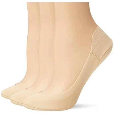 HUE Women's Hidden Cotton Perfect Edge Liner Sock with Gel Tab, Cream 3 Pair Pack, One Size (Pack of 3)