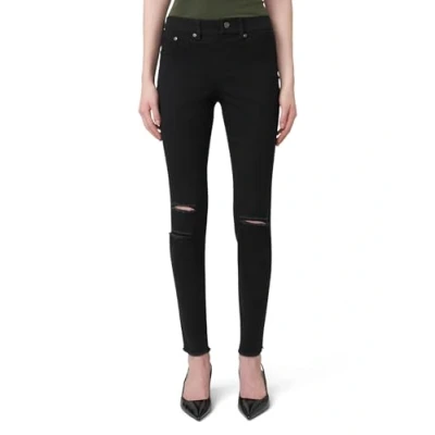 HUE Women's Ripped Knee Denim Leggings, Black, Large