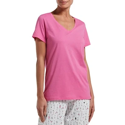 HUE Women's Short Sleeve V Neck Sleep Tee Pajama Top, Phlox Pink, Medium