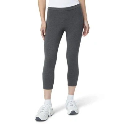 HUE Women's Wide Waistband Blackout Cotton Capri Leggings, Assorted, Graphite Heather, XL