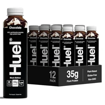COMPLETE MEAL IN A BOTTLE: Each bottle is packed with 35g of plant-based protein, 26 essential vitamins and minerals, and 400 calories, offering balanced nutrition wherever life takes you. SMOOTH, NATURALLY DELICIOUS FLAVOUR: Enjoy a smooth, creamy texture with naturally delicious flavours. Perfect for on-the-go consumption, this ready-to-drink meal is convenient for busy mornings, post-workout recovery, or as a quick meal replacement anytime. PREMIUM INGREDIENTS, RICH IN NUTRIENTS: Crafted with pea protein, faba bean protein, flaxseed, coconut, and tapioca, this meal shake is loaded with fibre, calcium, iron, and MCTs, supporting digestion, muscle function, metabolism, and energy levels. SCIENCE-BACKED HEALTH BENEFITS: Packed with over 170 research-backed health benefits to help fuel you through the day. Formulated with protein and essential nutrients that support muscle growth, reduce fatigue, maintain immune function, and help care for your hair, skin, and nails. 100% VEGAN & GLUTEN-FREE: Plant-based and free from artificial sweeteners, flavours, and colourings. Non-GMO and gluten-free, Huel Black Edition Ready-to-drink offers clean, sustainable nutrition with a taste you will love.