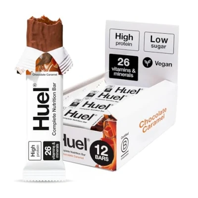 HIGH-PROTEIN COMPLETE NUTRITION BAR: Huel Complete Nutrition Bar is a satisfying snack combining indulgent vegan chocolate, smooth caramel, and balanced nutrition. Each bar delivers up to 14g of plant-based protein, 26 essential vitamins and minerals, and under 200 calories. CHOCOLATE-COVERED, ON-THE-GO SNACK: Enjoy a delicious caramel and chocolate bar anytime, anywhere. Perfect for curbing hunger between meals, pre-gym fuel, or a post-workout boost—just grab and go. PACKED WITH NUTRIENTS & LOW IN SUGAR: With high fibre, plant-based protein, and low sugar, this bar helps support energy, digestion, and muscle function, keeping you full and satisfied. SCIENCE-BACKED HEALTH BENEFITS: Delivers over 170 research-backed health benefits per bar. Formulated with nutrients that support immunity, reduce tiredness and fatigue, contribute to energy metabolism, help maintain healthy hair, skin, and nails, and more. 100% VEGAN & NON-GMO: Plant-based and free from artificial flavours and colourings. Low in sugar and non-GMO, Huel Complete Nutrition Bar is a clean, nutritious snack designed to fuel your day.