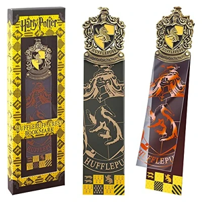 These quality enamelled Hogwarts house bookmarks can be used to keep your place in your spell book, or simply your latest re-read of any of the amazing Harry Potter books, making them the perfect present for any Harry Potter fan! Each collectable Harry Potter bookmark measures 10in (25cm) long, 3in (8cm) wide and is topped by a 3/4in (2cm) thick crest. Topped with a die cast, hand enamelled crest, the tongue of the book mark is made from plastic and extra strong card to provide a flexible fit to stop the spine of your book breaking up. The full range of bookmarks includes high quality, hand finished, bookmarks for all four houses: Gryffindor, Slytherin, Ravenclaw & Hufflepuff. The fifth is the famous Hogwarts school crest. Each Noble Collection Hufflepuff bookmark is an officially licensed memorabilia item. Crafted with high quality materials, every bookmark is topped with a hand enamelled crest to provide the most realistic experience whilst being hardwearing and durable. In the unlikely event you're not completely happy with your Harry Potter merchandise we will provide you with a full refund in accordance with Amazon terms.