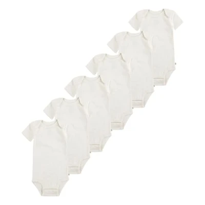 100% Organic Cotton. Oeko-Tex & GOTS certified. 6 pack body's. Round neck. Crotch closure. Short sleeves