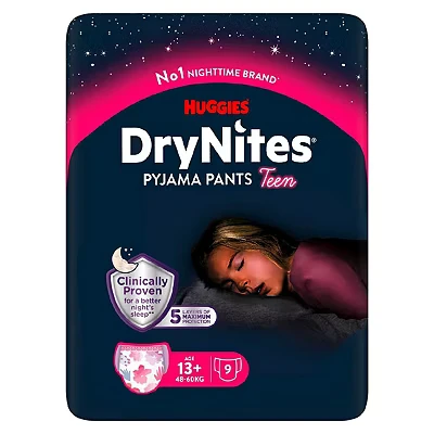 Boots15 Advantage card points. Huggies DryNites Bedwetting Pyjama Pants Girl Age 13+(49-60kg) 9 Pants FREE Delivery on orders over 45 GBP.
